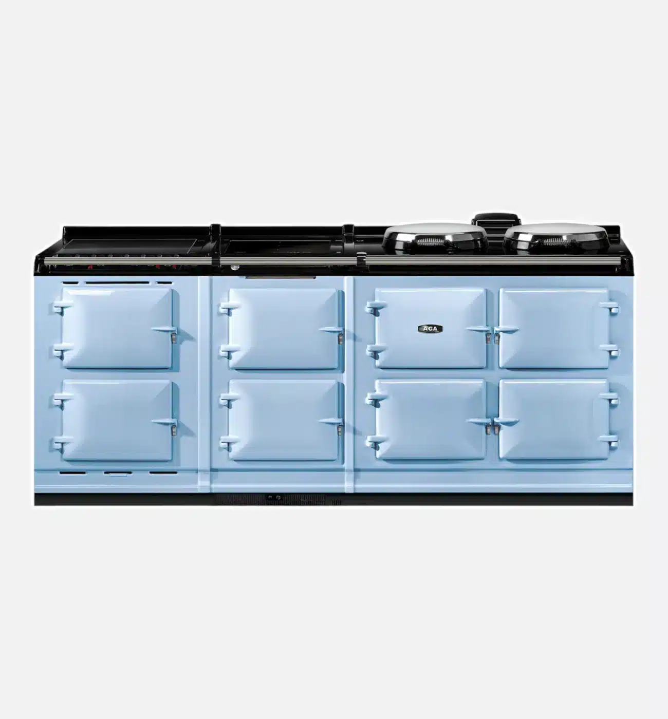 - AGA eR7 210 cookers offer three cast-iron heat storage ovens – for roasting, baking and simmering – and two hotplates which are controlled by a touch-screen panel. Hotplates and ovens can be operated independently, and for optimal control, there are 5 heat settings for the roasting oven and 4 for the baking oven.