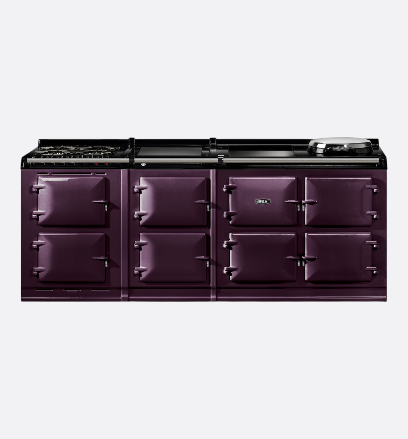 The AGA eR7i 210-7g offers cast-iron radiant heat cooking combined with innovative technology to provide additional range cooker capabilities. This range cooker offers two cast-iron heat storage cookers for roasting, baking and simmering, alongside a conventional fan oven. The roasting and baking ovens offer ultimate precision with additional pre-set temperatures for accurate cooking, controlled by a state-of-the-art touch screen. The eR7i 210 offers a two-zone induction hob alongside a hotplate which can be set to boiling or simmering and switched on and off as you need, heating up in just 10-12 minutes, to help you control the energy that you use. In addition, the AGA eR7i 210 offers an additional conventional fan oven, two ovens for slow cooking and a warming oven as well as a warming plate and a four-burner gas hob.
