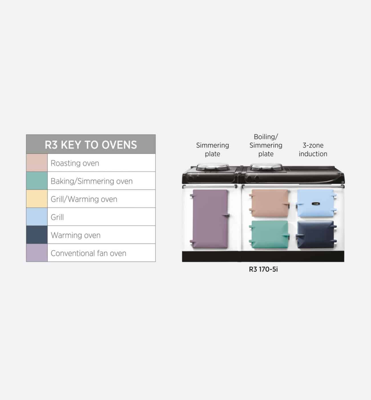 - The AGA R3 Series 170 features a cast-iron heat storage roasting oven, an enamelled baking/simmering oven as well as a warming oven and an integrated, infrared grill.