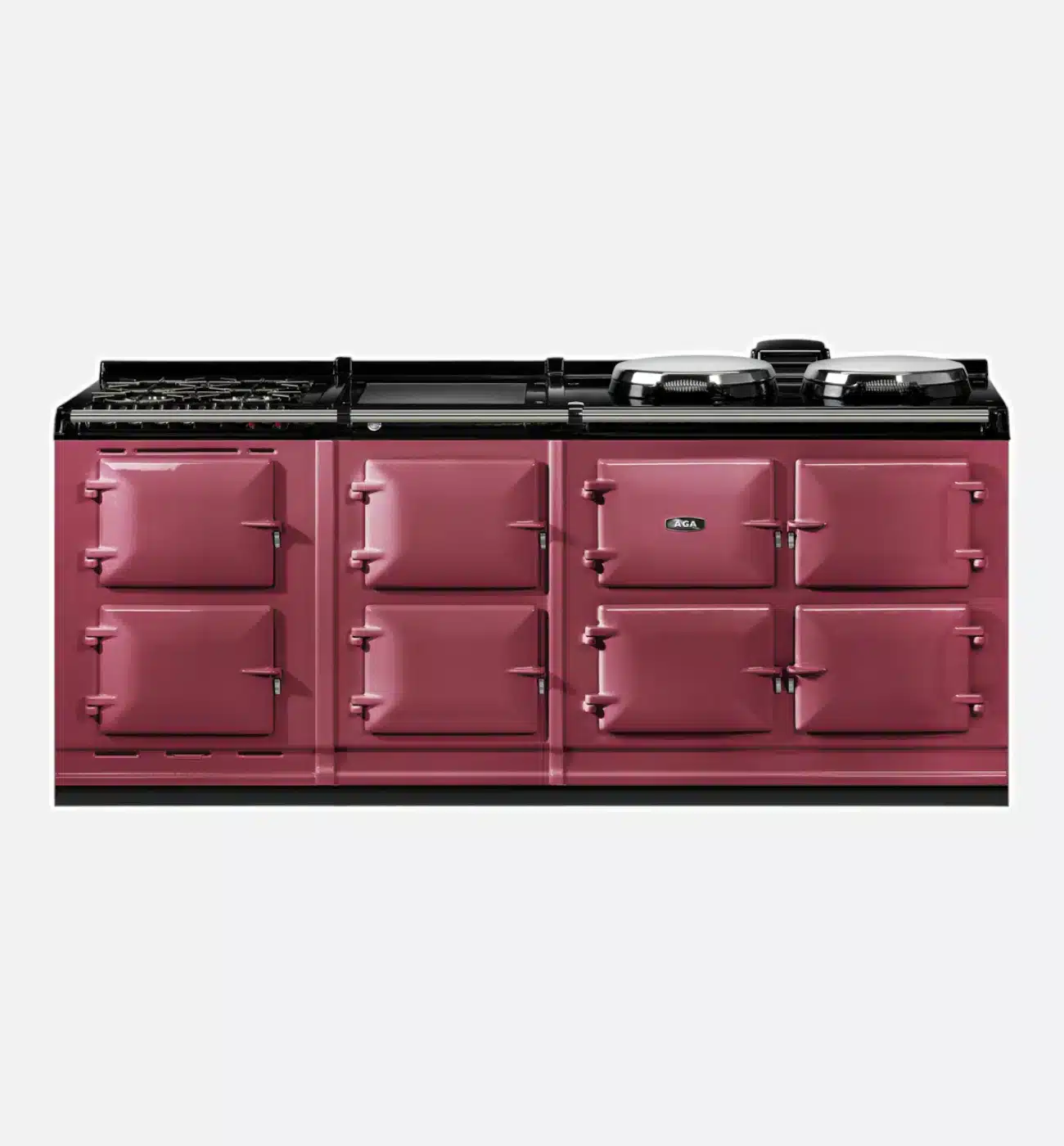 - The AGA R7 210 features three cast-iron heat storage ovens for roasting, baking and simmering and offers two hotplates which can be switched on and off independently of the ovens, and each other, and heat up in 10 to 12 minutes. This model offers an additional grill, fan oven, warming oven and two slow cooking ovens, as well as a 4-zone gas hob and the choice of either a single-zone induction hob or a warming plate.
