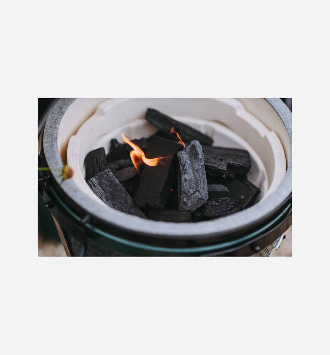 This is the easiest charcoal you will ever have to light, full stop. Simply fill your Egg up to two inches below your cooking surface, and place a lit firelighter in the centre. Come back in ten minutes, and close the lid.