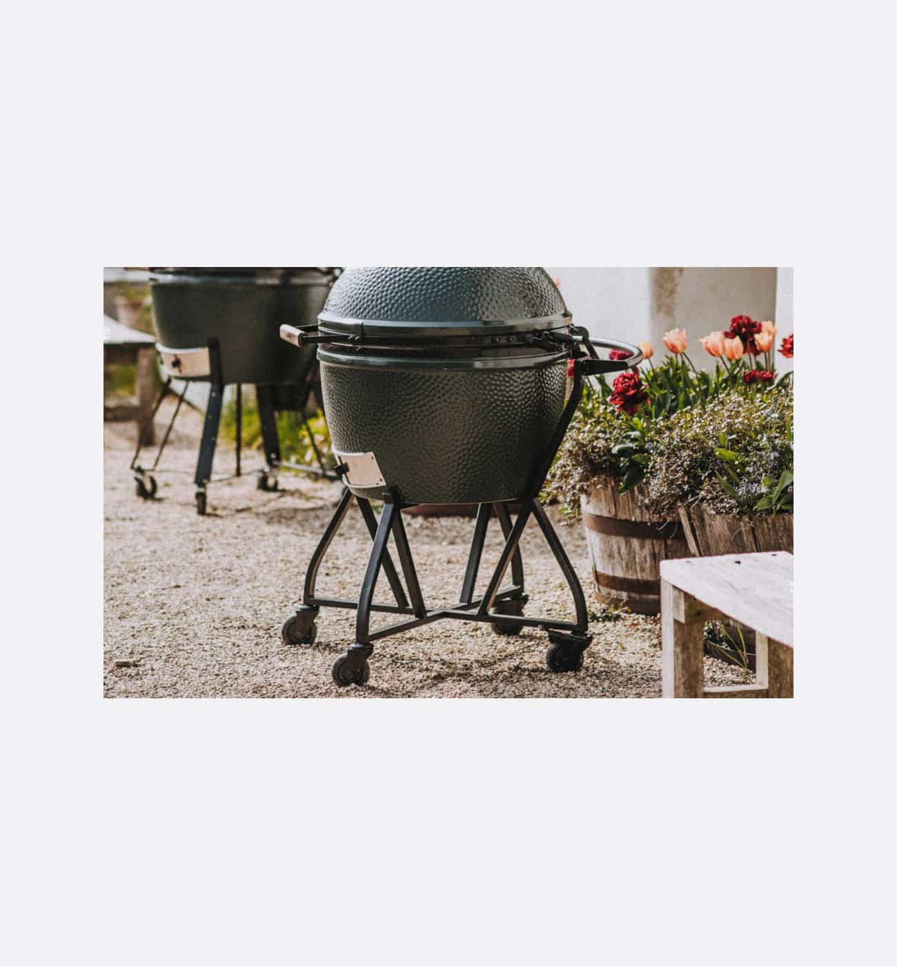 Manoeuvring your Egg couldn’t be easier. Just wheel it into place, light up and get cooking.