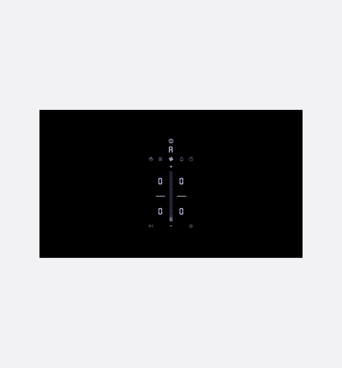 The tricolour touch panel provides precise, easy control of cooking and extraction functions with clear visual feedback.