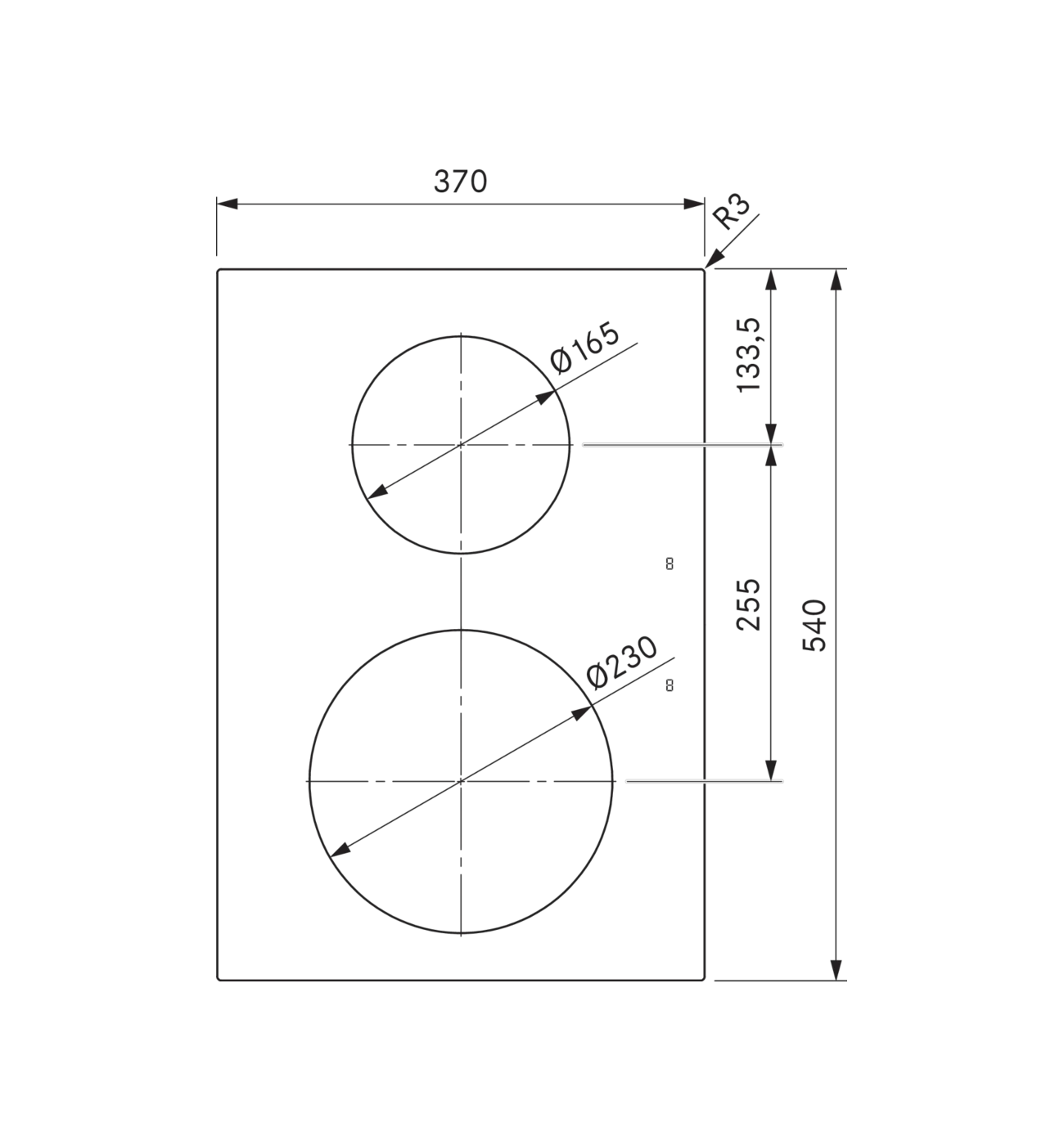 - Size of rear cooking zone Ø 165 (mm)