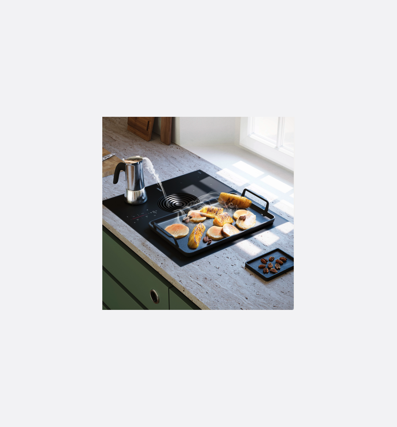 Includes BORA Assist (Fry), coffee function, automatic heat-up, heat retention, bridging, timers, and pause mode to simplify everyday cooking.