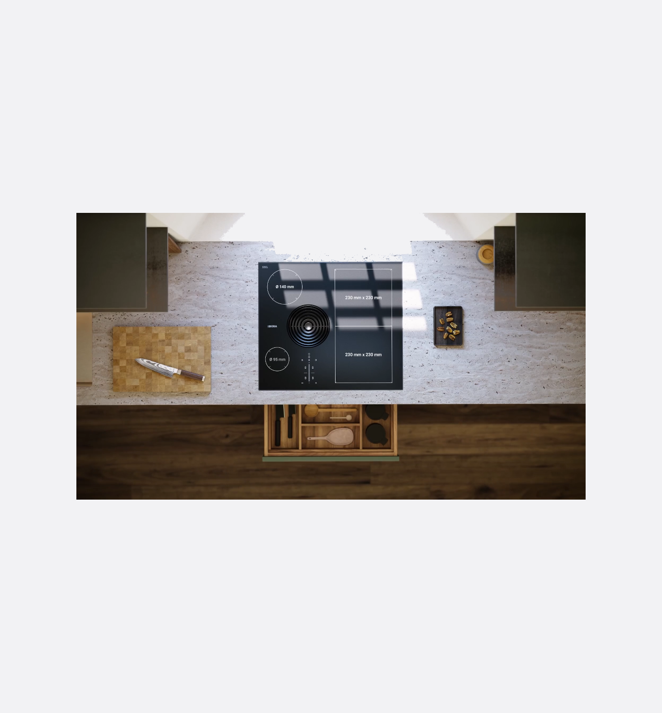 Suitable for flush or surface mounting in a 60cm base unit with integrated air purification box. Not designed for installation above an oven.