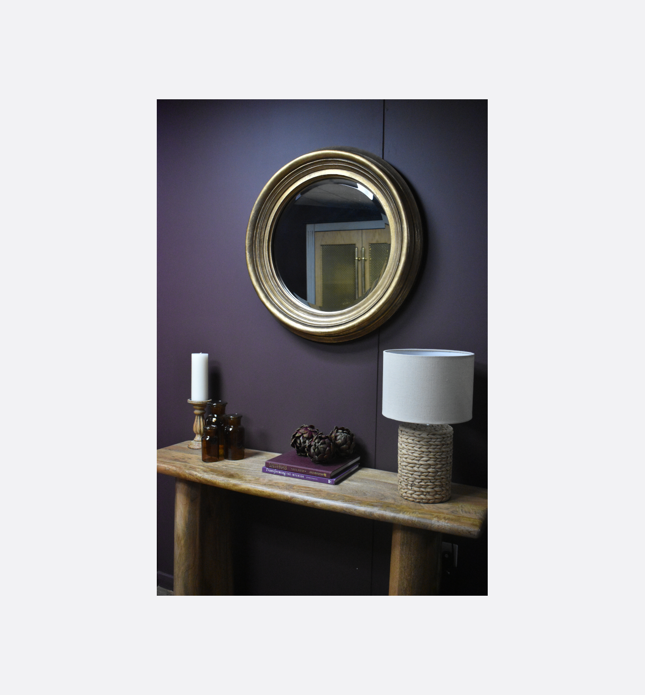 This elegant round mirror features a beautifully layered frame finished in a warm, antique-style gold. The gentle distressing and tonal variation across the surface give it an authentic aged character, adding depth and charm to any interior. Its classic circular shape makes it a versatile accent piece, perfect for hallways, living rooms, bedrooms, or dressing spaces.