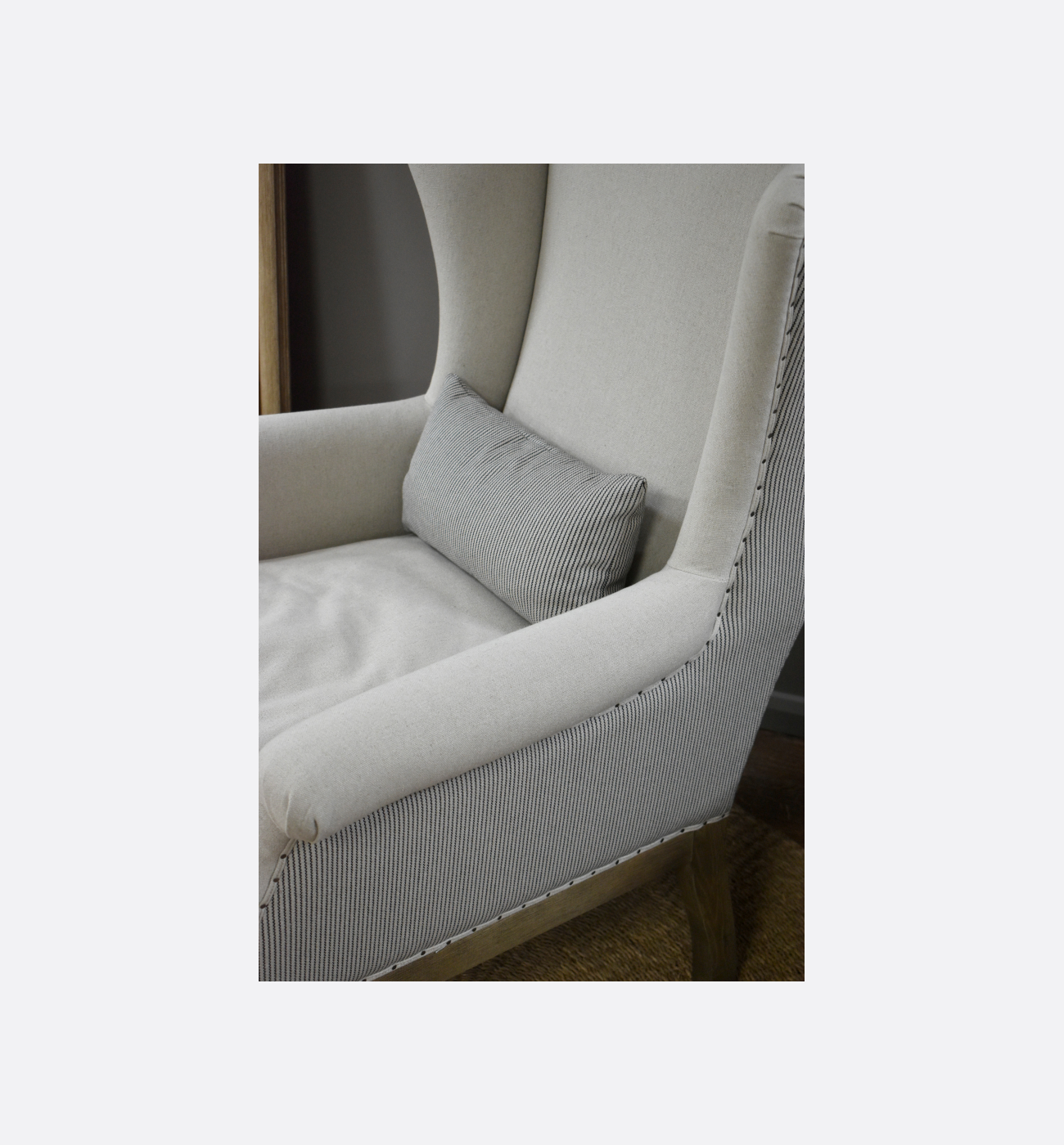 Designed for comfort as well as style, the chair boasts a luxuriously deep seat cushion perfect for unwinding at the end of the day. A coordinating ticking stripe scatter cushion is included to provide added support and visual appeal.