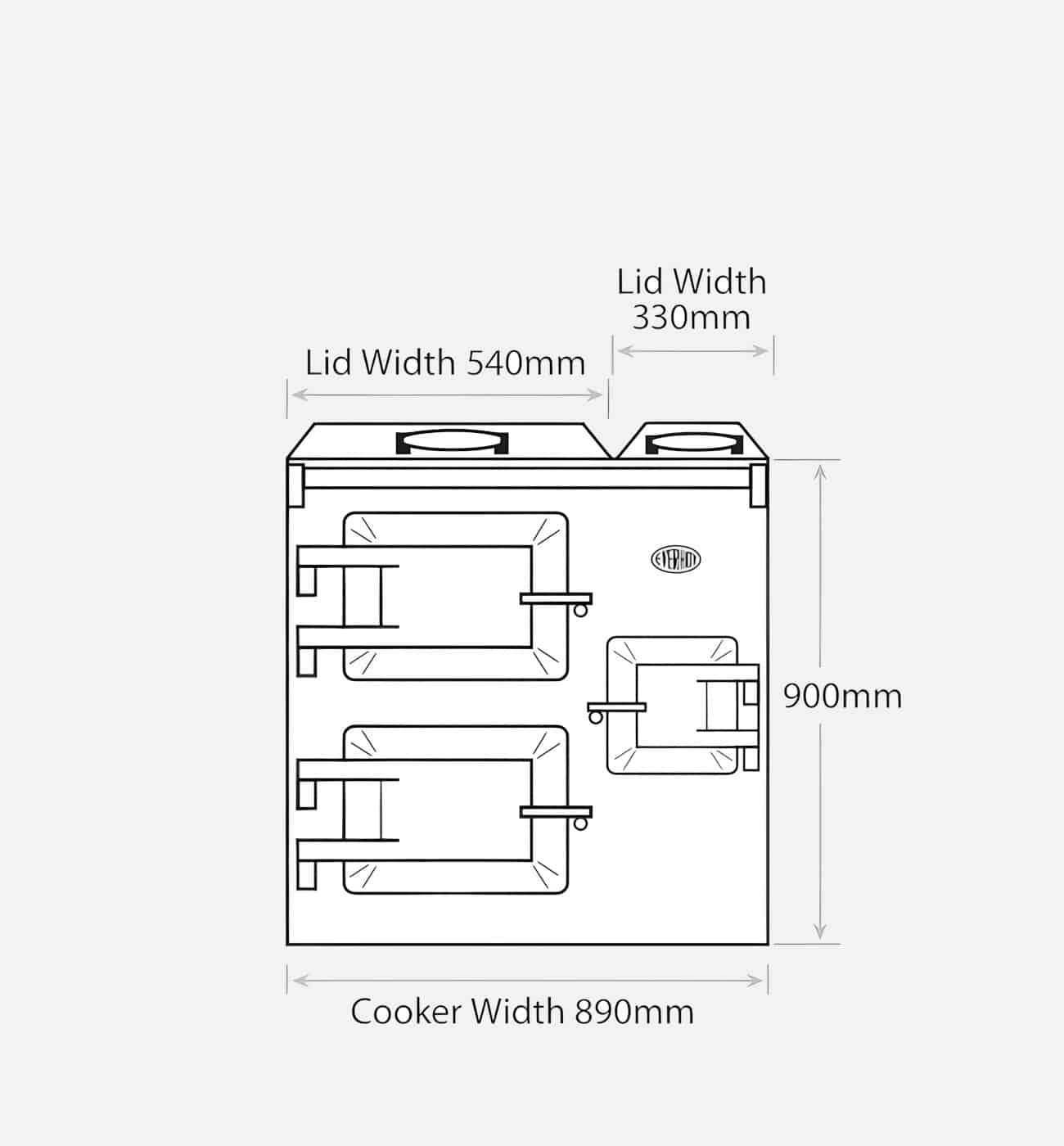 - The width makes these cookers the ideal replacement for traditional ranges, often built to this size. The easy to use controls are accessed from behind the small cast iron door on the front of the cooker.
