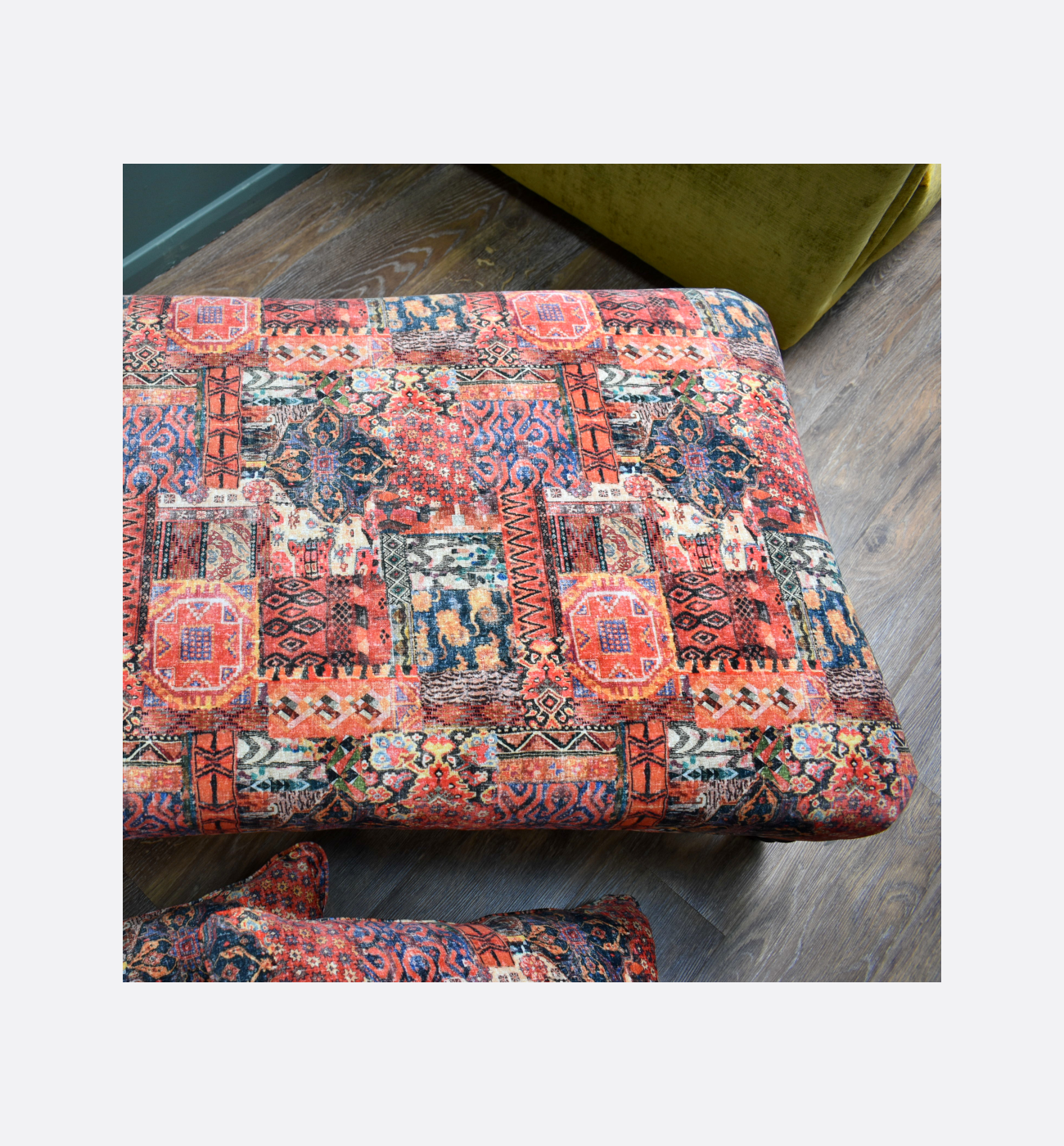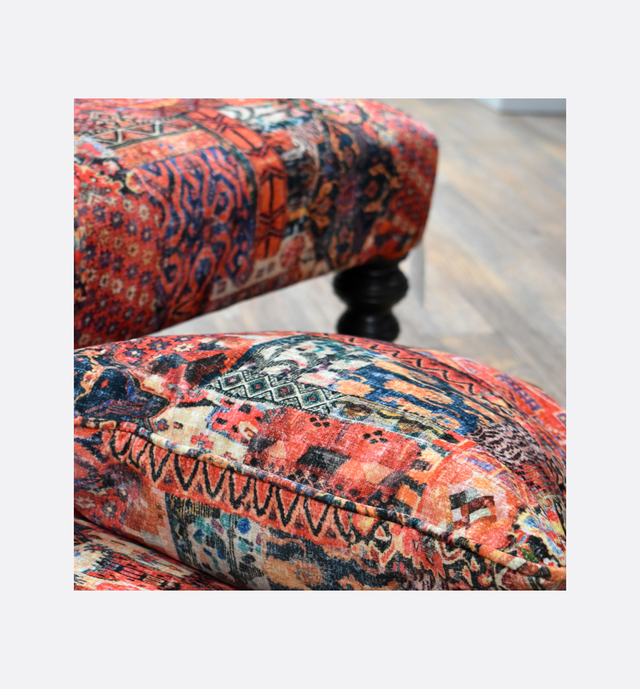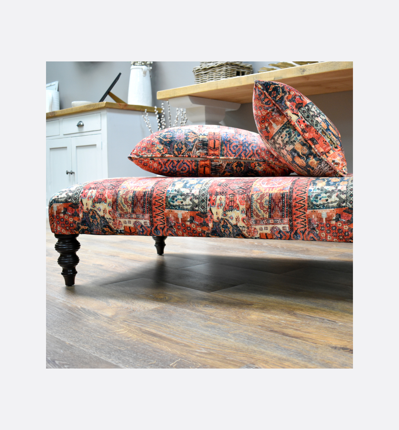 This beautifully proportioned footstool features gently curved sides and works perfectly as extra seating or as a coffee-table alternative with a tray placed on top. Finished in the striking Fez Paprika fabric, this ex-display piece offers both style and versatility.