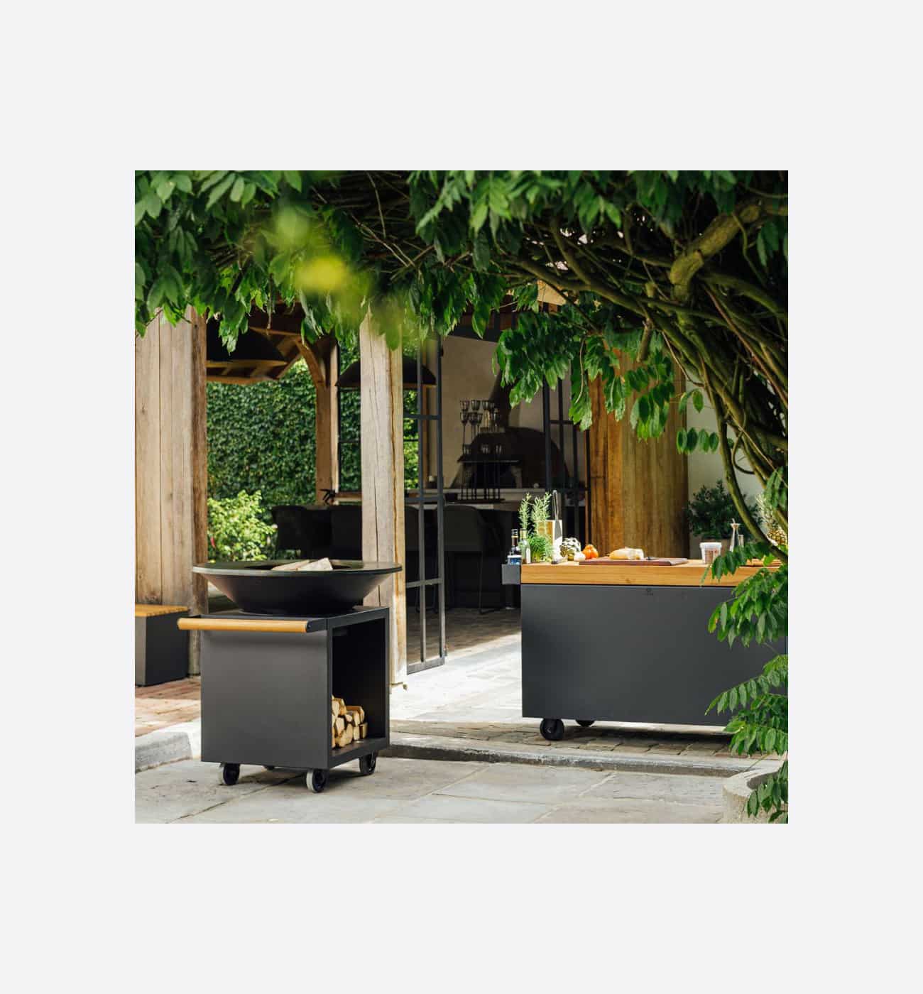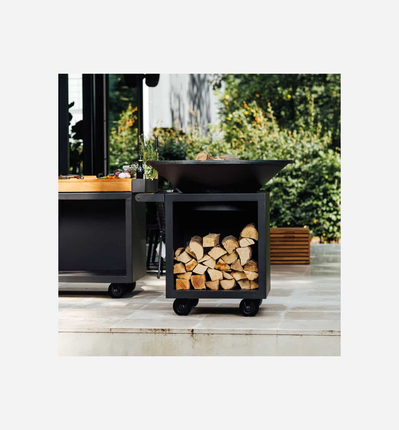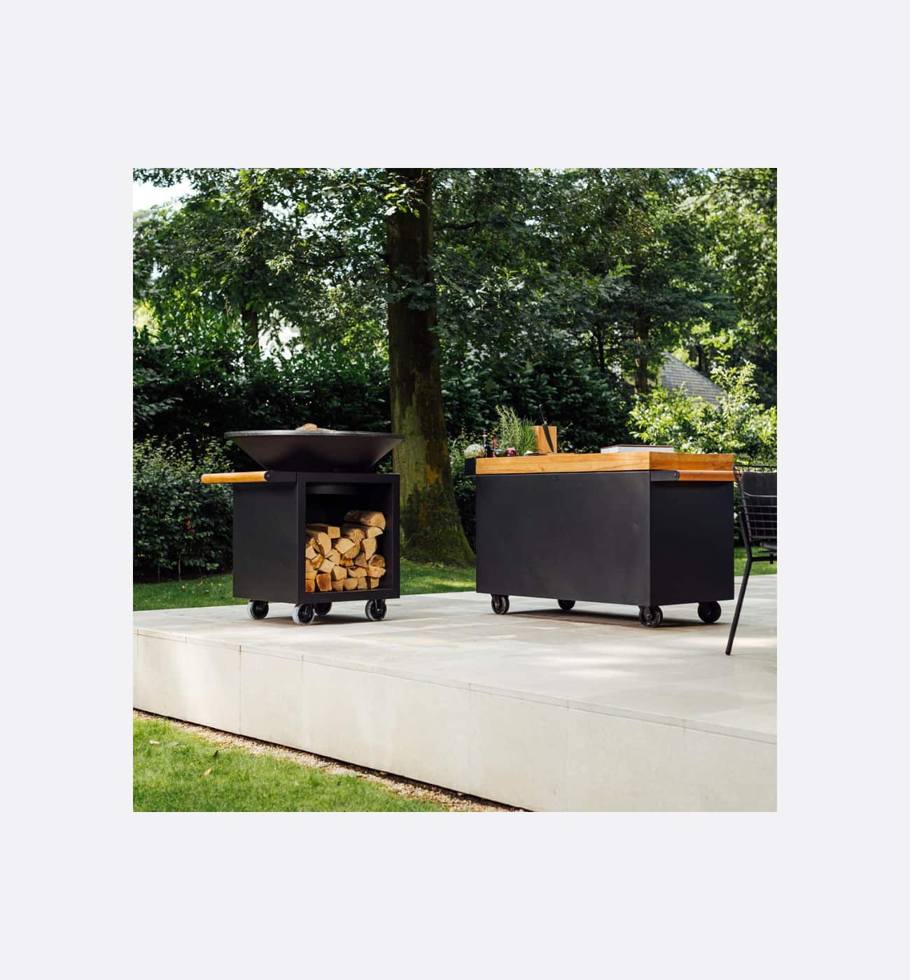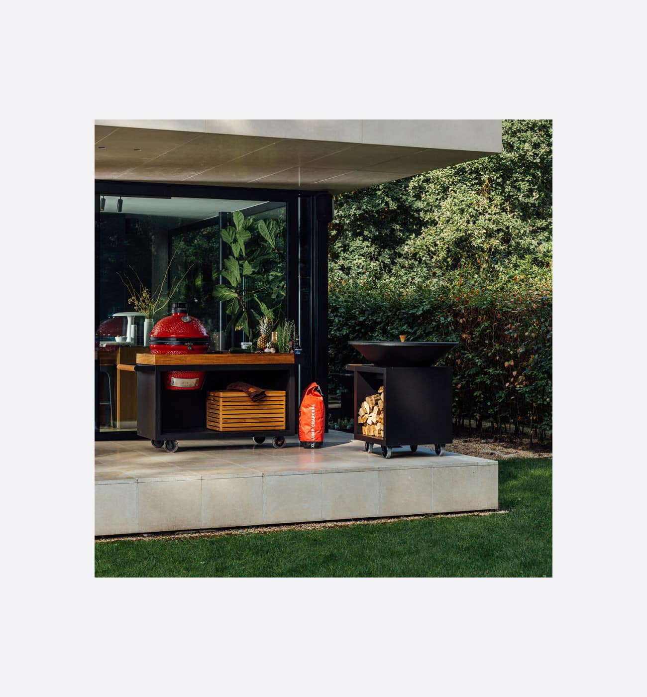 The OFYR Classic Storage Corten 100 PRO has the characteristics of the OFYR Classic Storage, with the added convenience of a handle and wheels. Hereby, you can easily move your cooking unit. Only available in 100 cm in diameter.
