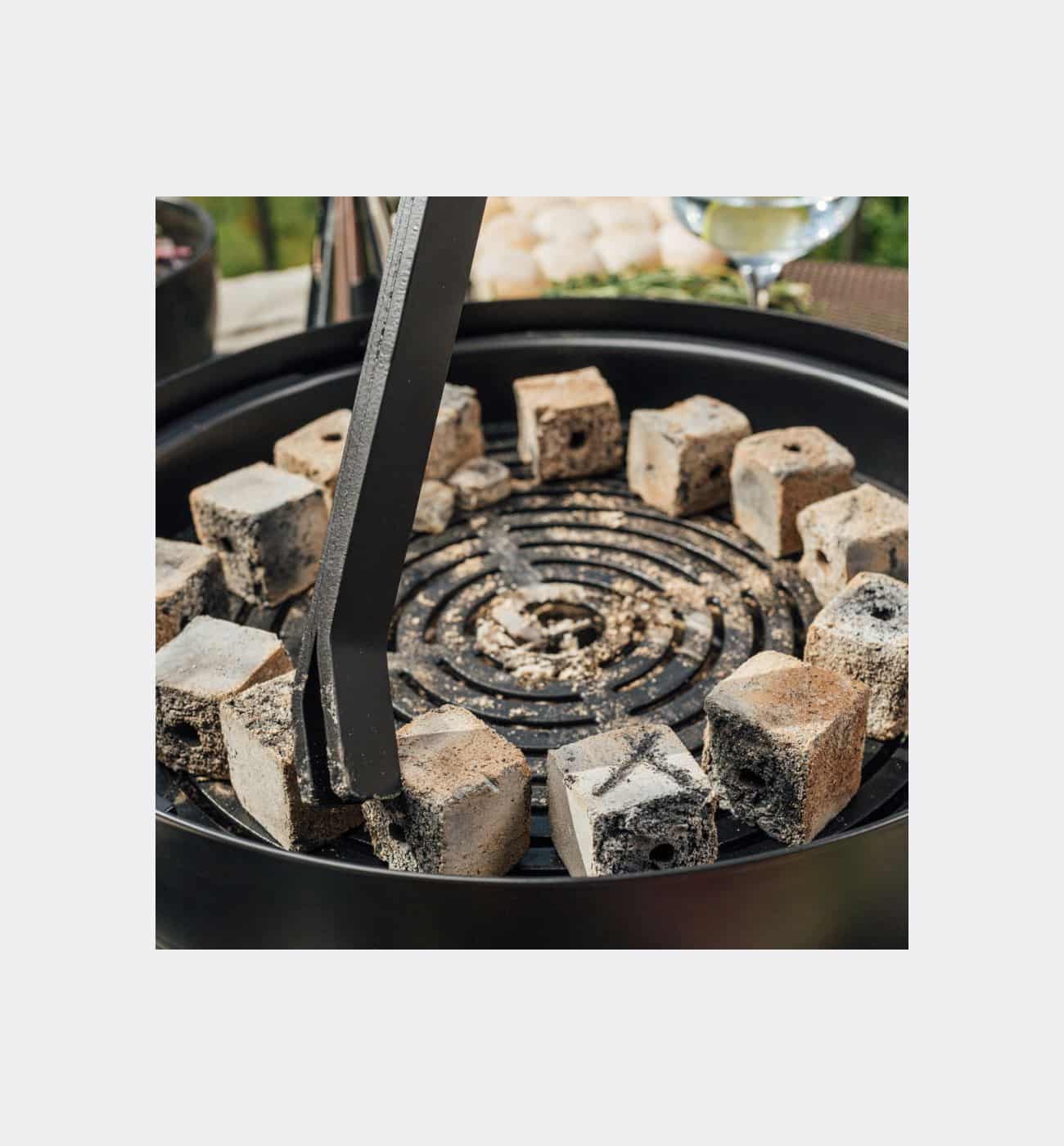 • These coconut briquettes are durable, there is no smoke once they go into the Tabl’O, only when starting in the supplied Quick Starter. They also do not spread any odour.
