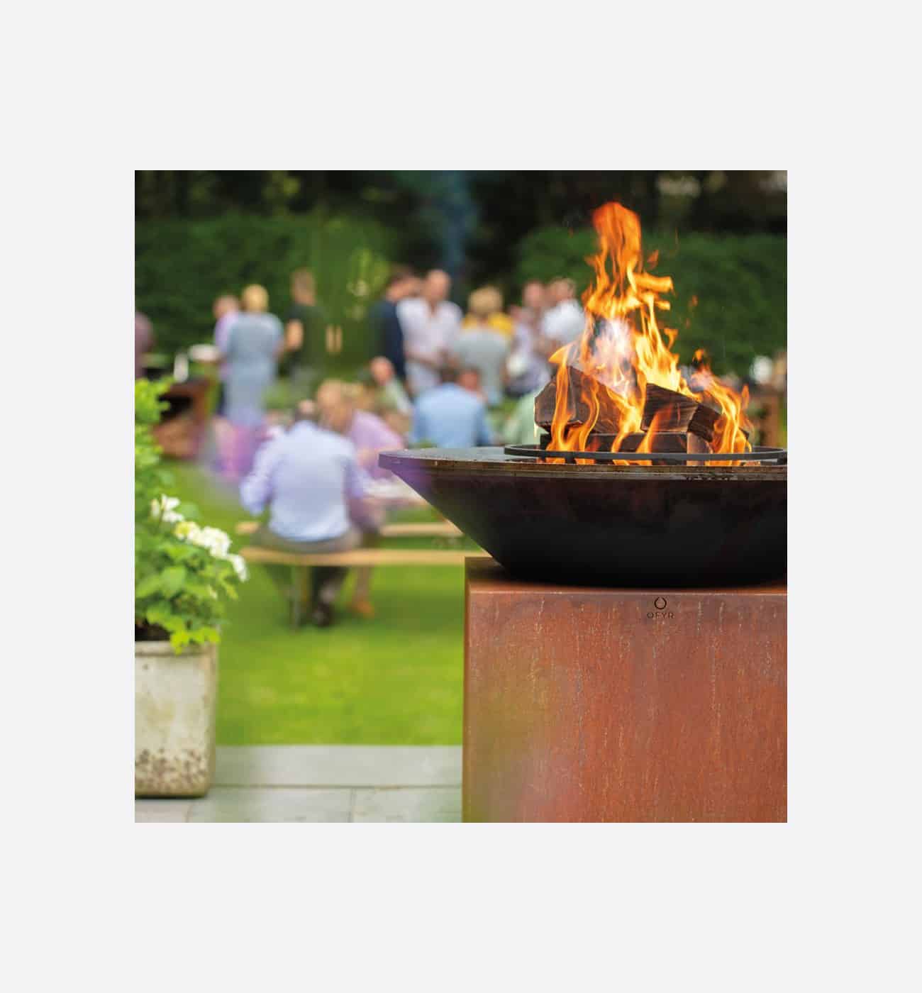 The cooking plates of the OFYR cooking units run slightly downward towards the centre. When the cooking plates are heated, the centre will drop a little further down. The result is that around food such as tomatoes but also very fatty food can roll or slide to the centre of the cooking plate and fall into the fire. To avoid this, the OFYR Food Bumper has been developed. The raised steel rim stops the food but still offers the possibility to scrape the cooking plate clean with the spatula and push the scrape under the rim into the fire.