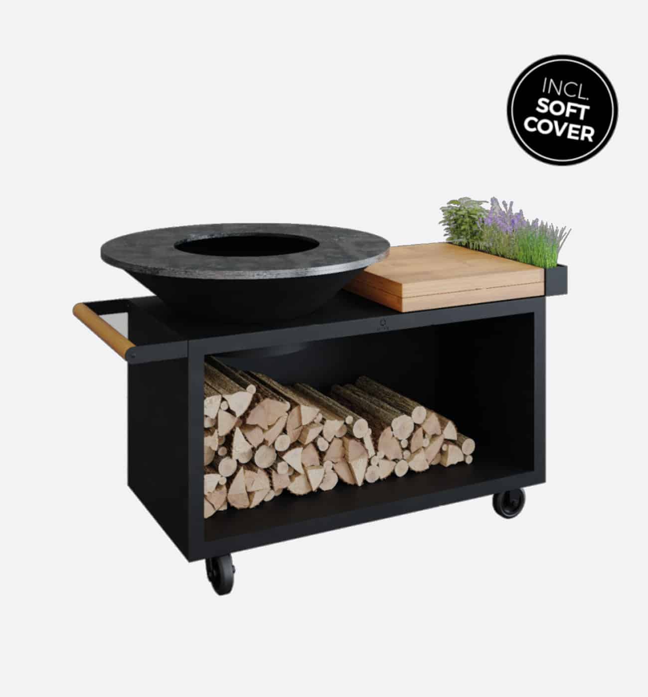 - This model can be steered thanks to the handle and the (unbraked) wheels. When the storage is filled with wood, the unit is relatively heavy.