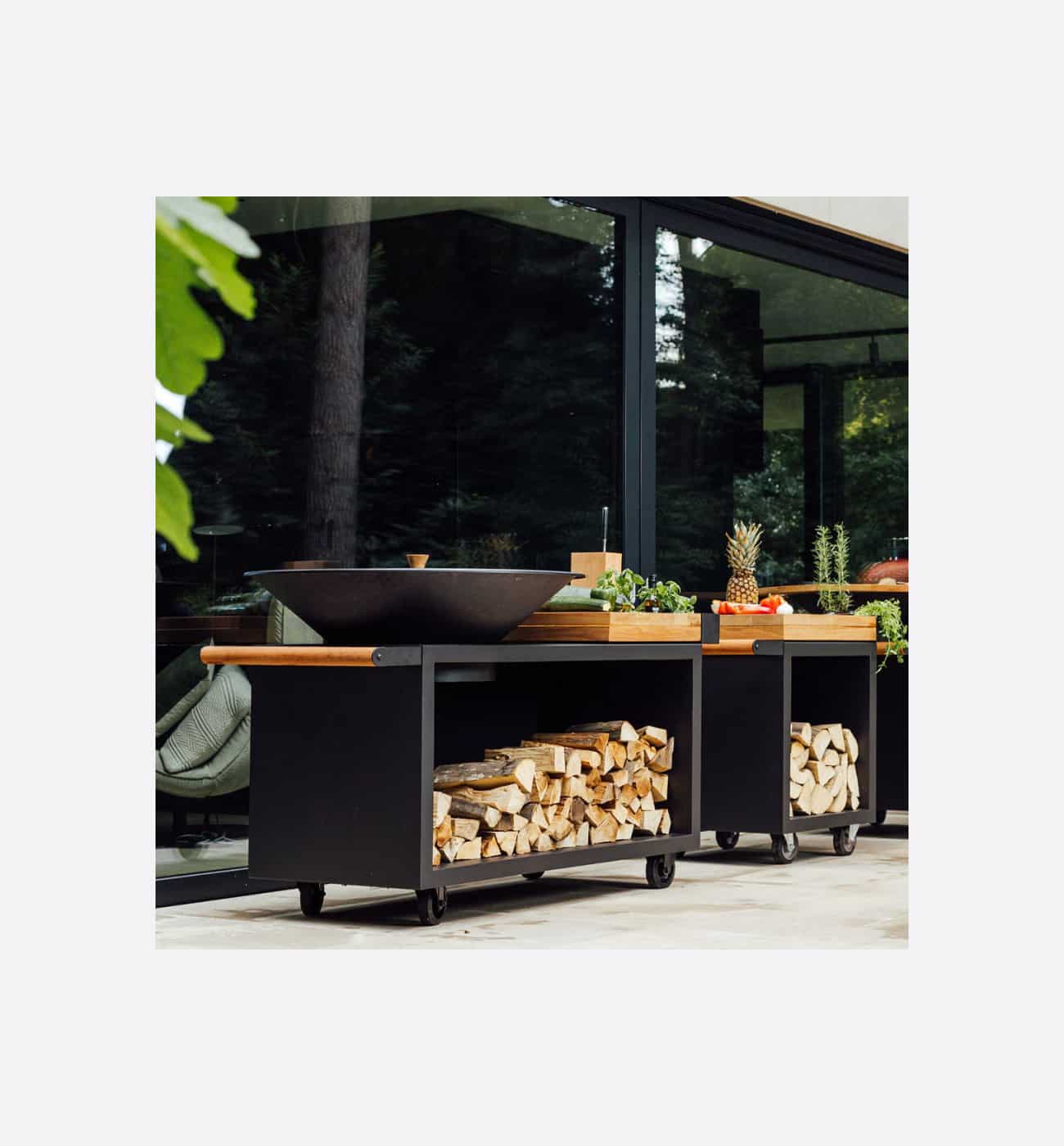 - A ceramic worktop can be left outside permanently, a teak worktop is best kept inside and must be regularly treated with an oil suitable for food.