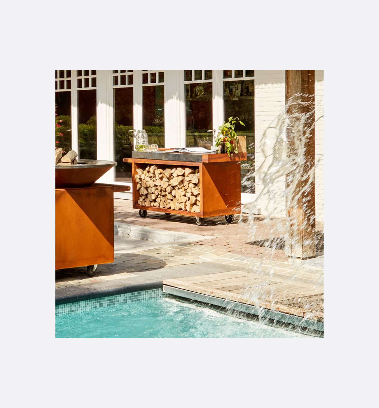 The OFYR Mise en Place Table Corten 135 PRO is incredibly handy to use with your cooking unit, allowing you more space to prepare your food. With the 135 x 65 cm, there is ample working space. The chopping board is available in teak wood and dark grey ceramic.
