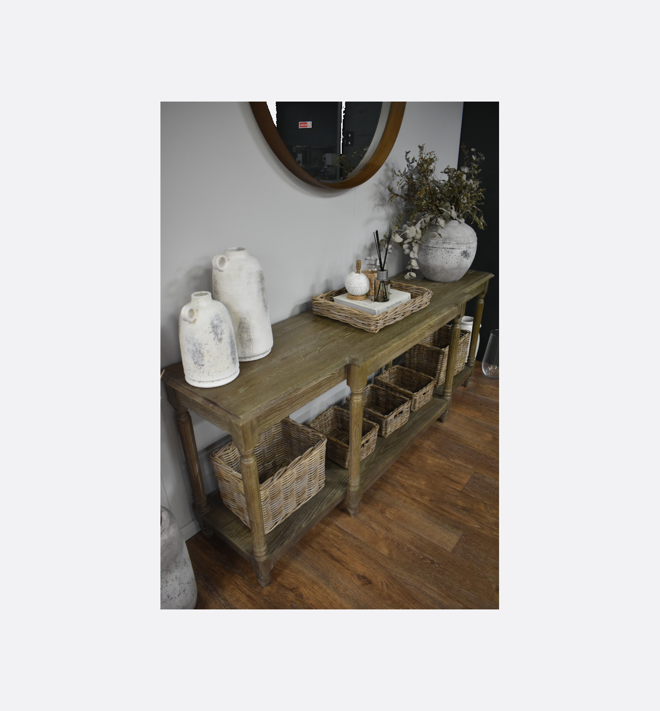This large break-fronted console is ideally sized to serve as a sideboard in a kitchen, dining room, or spacious hallway. Its Burnt Oak finish adds an organic warmth while still revealing the natural beauty of the wood grain. With two generous surfaces for storage and display, it’s a practical and stylish addition to any larger room.