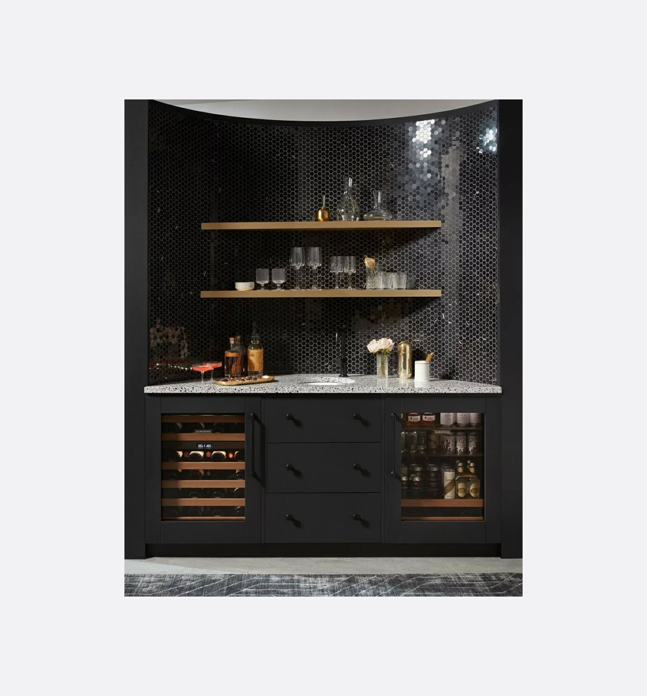 The Sub-Zero Under-counter Wine Storage integrates seamlessly and beautifully into any space thanks to its fully customisable panel-ready doors, integrated hinges and toe kicks, and a consistent 3mm reveal.