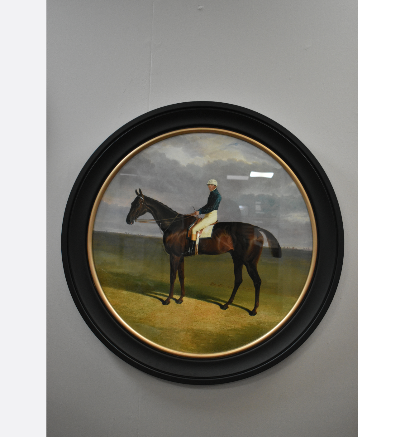 A beautifully restored c.1840 pair of stately horse paintings presented in an elegant Oxford round frame, printed to archival quality and ready to hang — perfect for adding timeless equestrian charm to interiors.