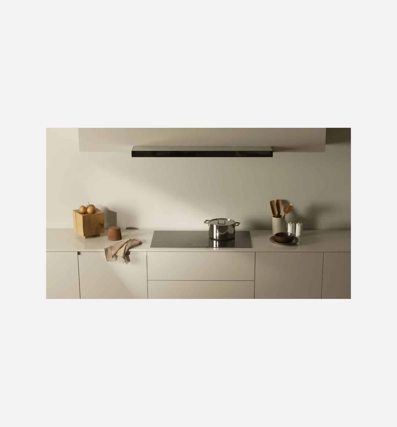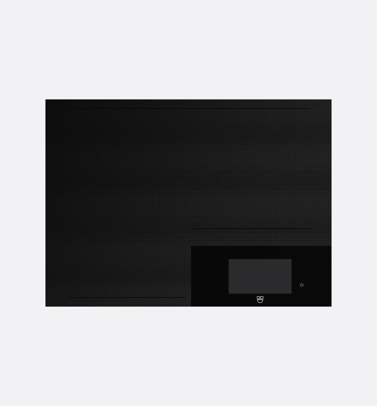 The hob features a large full-touch colour display for intuitive and simple operation. A fine, elegant surface treatment protects the glass ceramic surface. When not in use, only the discreet power switch, subtle guiding lines and the V-ZUG logo are visible.