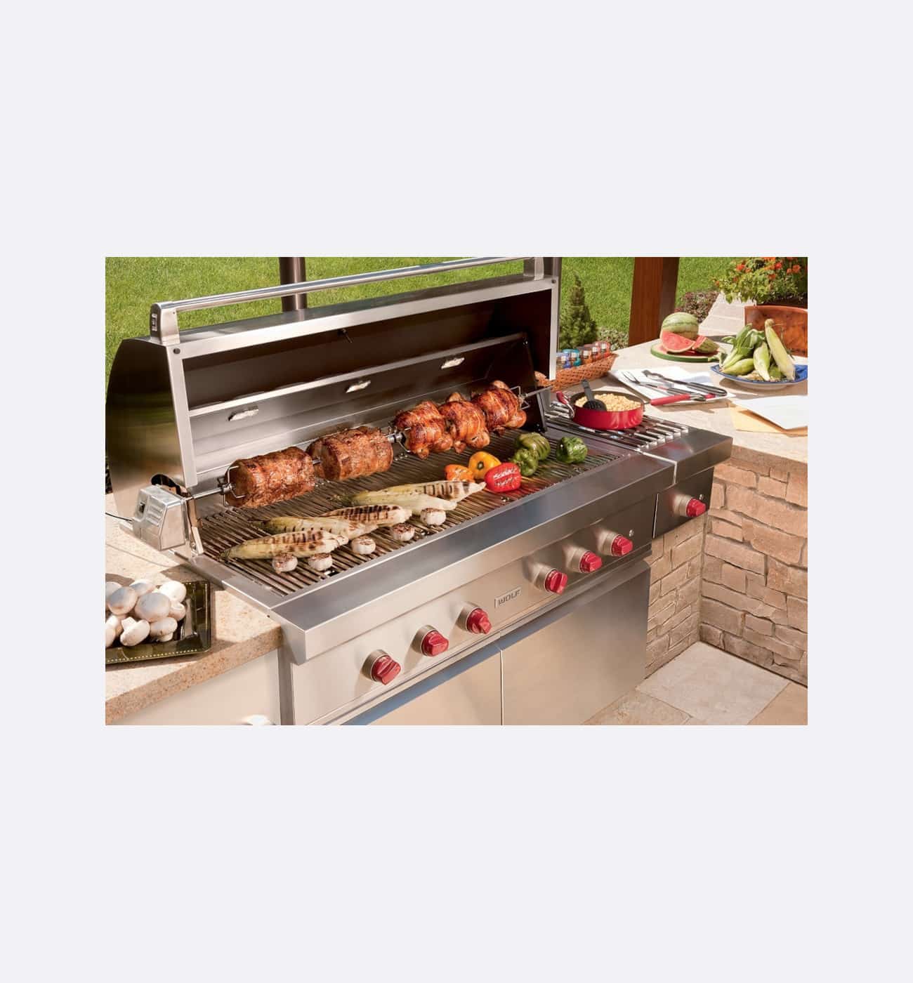 • Our ICBOG54 has six individually contained burners for independent heat control, including an infrared sear zone up to 29 MJ to seal in juices, and a pair of two-position rotisseries for chicken or pork at its most succulent.